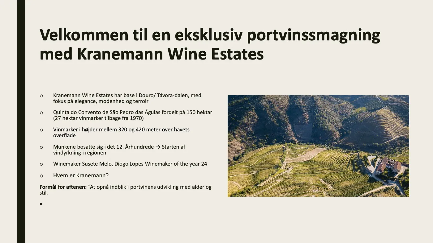 Vi skal smage portvine fra Kranemann og får besøg af den danske importør, Louisa fra Cavaco Vine.