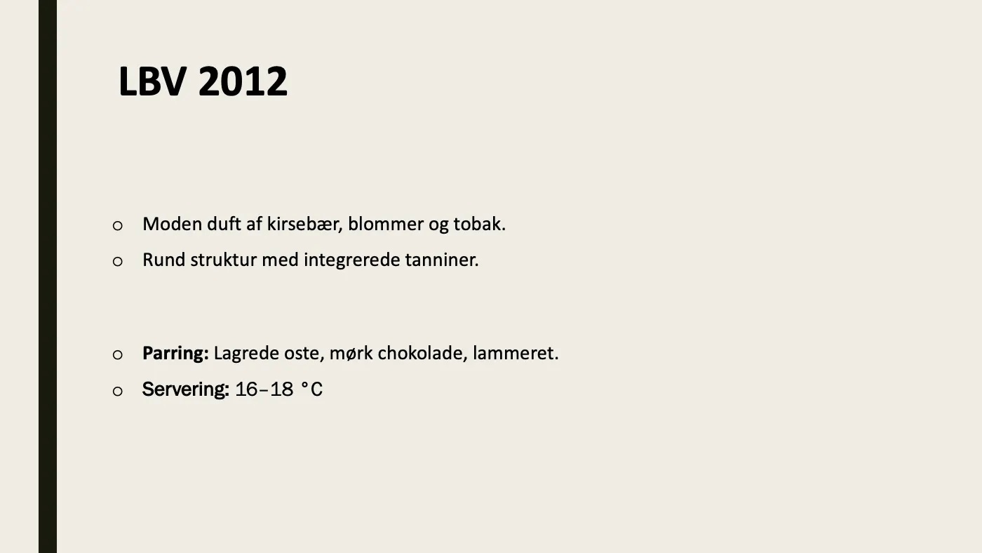 LBV 2012 (flasket 1016) og Vintage 2009 er begge fra før Kranemann-navnet kom til og er derfor en anderledes stil end de to andre.